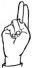 На ћирилици написано ЊЕГОСЛАВ ЛЕВИЧАНИН састоји се из 17 слова [?]. Исписано ћириличном једноручном азбуком за глувонеме: